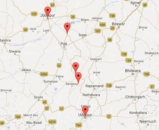 The terrain on the route varies from flat desert to grasslands to rolling hills. Maximum altitude is 1100m near Kumbhalgarh. In general the route slopes gently uphill from the Thar desert to the Aravalli mountain ranges till the village of Narlai. From here the hills begin. Nearly 30% of the route is flat and the remaining is amidst rolling hills. Average distance cycled per day is approx. 40 kms.
