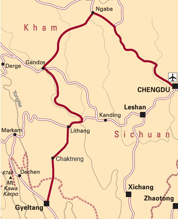 1./2. Tag: Flug von Zürich nach Chengdu u 3./4. Tag: Fahrt nach Ngawa u 5. Tag: Besichtigung Ngawa u 6./7. Tag: Fahrt nach Gandze u 8. Tag: Besichtigung Gandze u 9./10. Tag: Fahrt nach Litang u 11. Tag: Litang u 12. Tag: Fahrt nach Chaktreng u 13. Tag: Fahrt nach Gyeltang u 14. Tag: Besichtigung Gyeltang u 15. Tag: Flug von Gyeltang nach Chengdu u 16. Tag: Flug von Chengdu nach Zürich