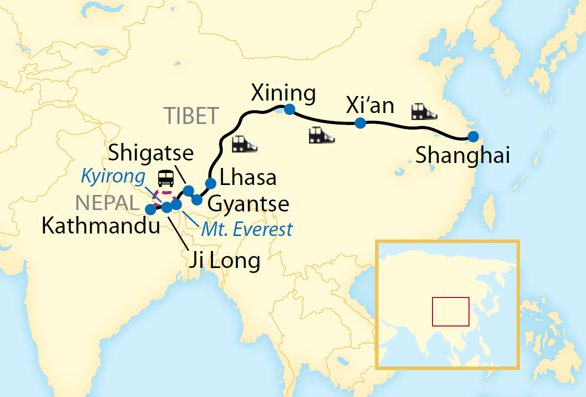 18-tägige Zug-Erlebnisreise durch China mit Fahrt auf der Tibet-Bahn und weiter nach Nepal