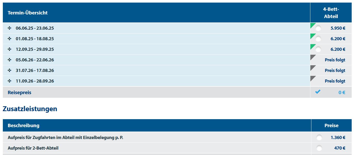 Wir haben mit den meisten Zügen direkte Verträge. So haben Sie bei uns immer den offiziellen Preis.