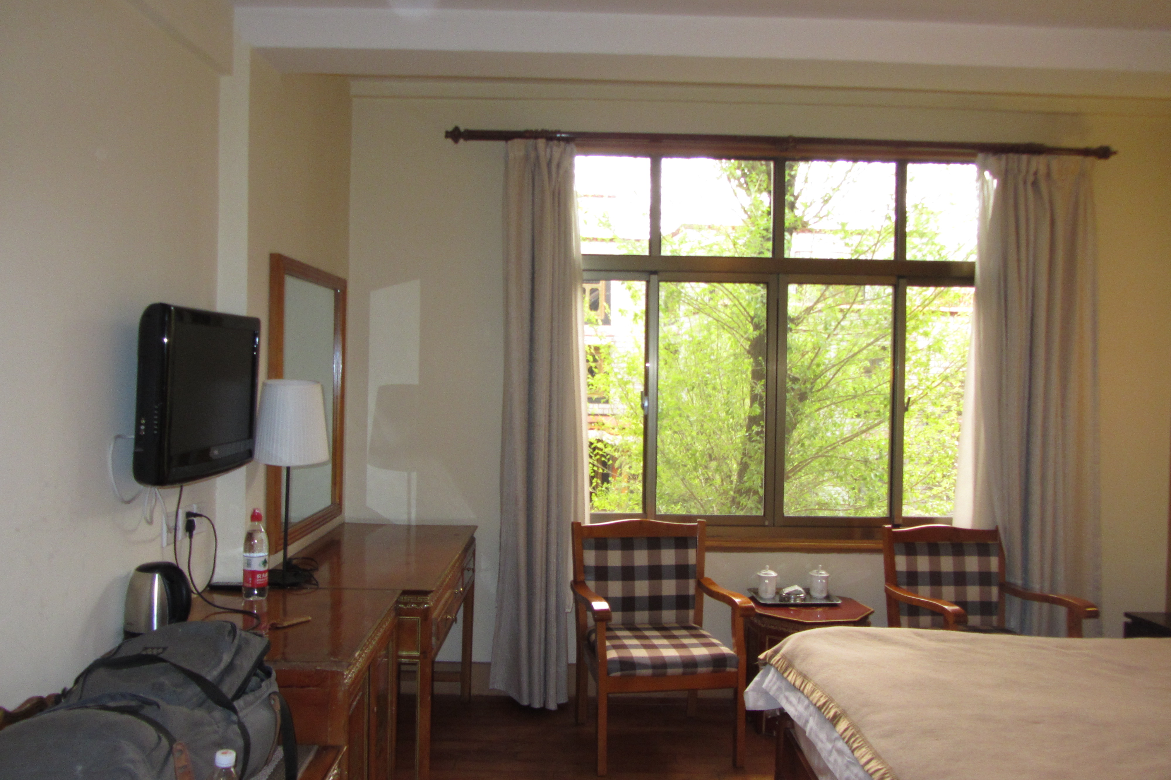 Das Hotel bietet eine Mischung aus westlichen und tibetischen Zimmern, von Einzel- über Doppel- bis hin zu Dreibettzimmern, alle mit eigenem Bad und Fernsehen. Die traditionell gestalteten Deluxe-Suiten und Standardzimmer haben bequeme Betten und bieten schöne Ausblicke auf die Stadt und die umliegenden Berge.