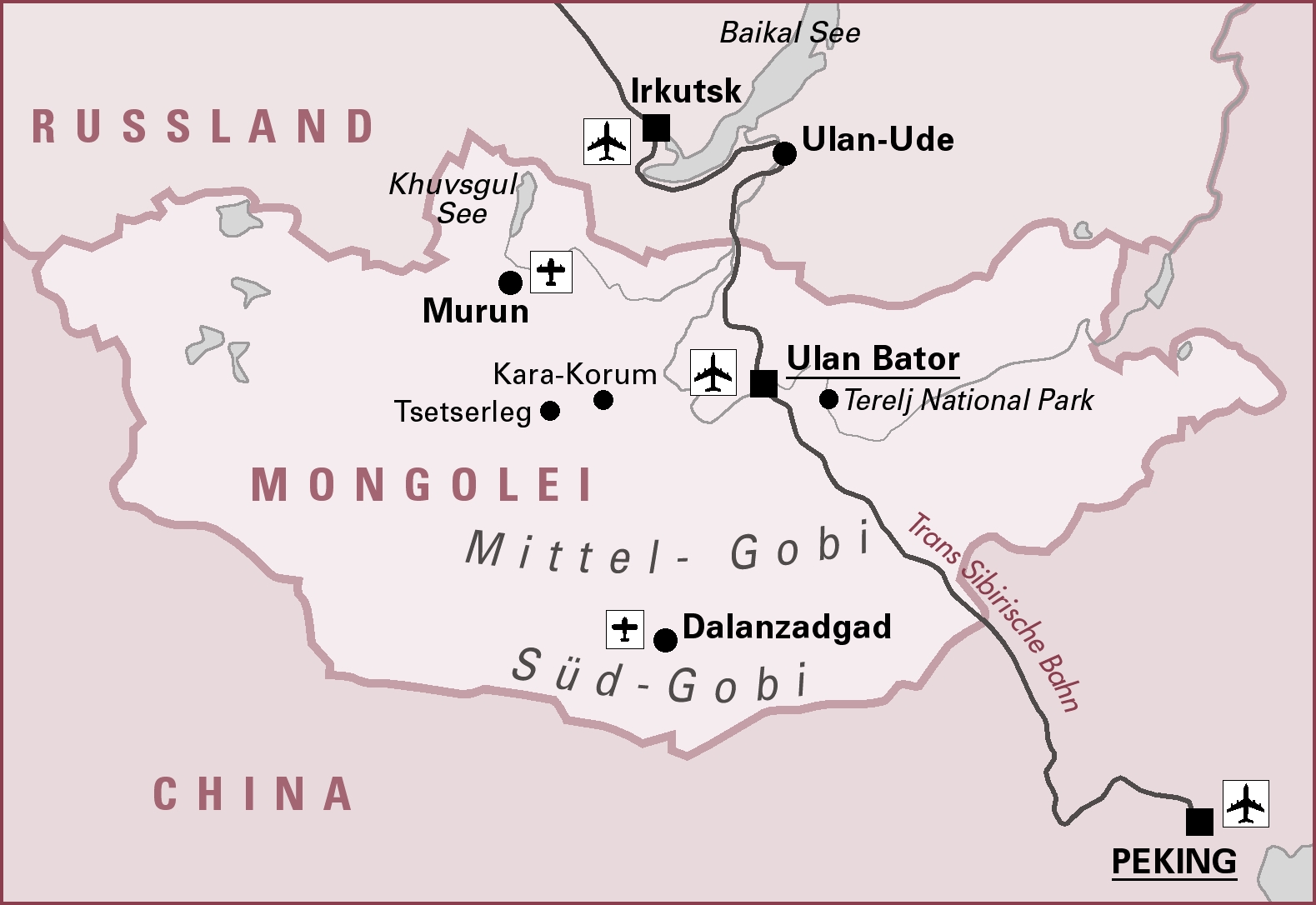 Einmalig werden die Eindrücke in der Wüste Gobi oder in den weiten Steppen sein. Die Weite der Landschaft lässt Sie den Freiheitsdrang der Mongolen spüren, und bei klaren Sternennächten fühlen Sie sich weit weg von Hektik und Stress. Besonders empfehlen wir den Besuch eines Naadam-Festes, sei es in der Hauptstadt Ulan Batar oder irgendwo auf dem Lande. Bei Bogenschiessen, Reiten und Ringkampf erleben Sie die Seele der Mongolei. Die Gastfreundschaft der Mongolen lässt Sie schnell vergessen, dass Sie als Tourist unterwegs sind.