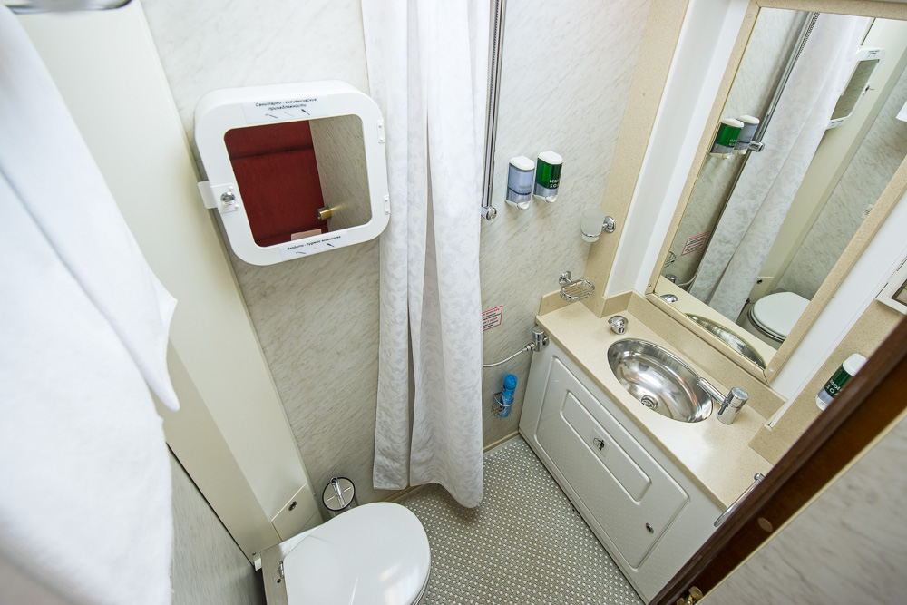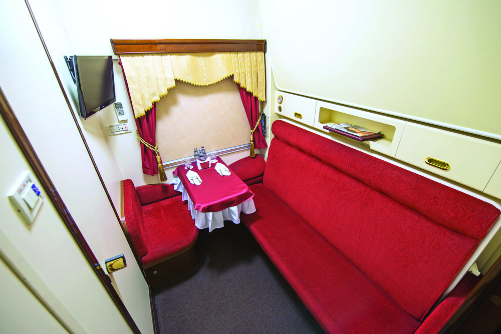 Der Wagen hat 6 Abteile, jedes mit maximal 2-Personenbelegung. 2 Betten übereinander: ein oberes Schrankklappbett und ein in ein Doppelbett verwandelbares Sofa, privates Bad mit Nassdusche, Waschbecken und WC, Tisch mit Sitzgelegenheit, LCD Fernseher, Kleiderschrank mit Gepäckstaufach, individuell einstellbare Klimaanlage.