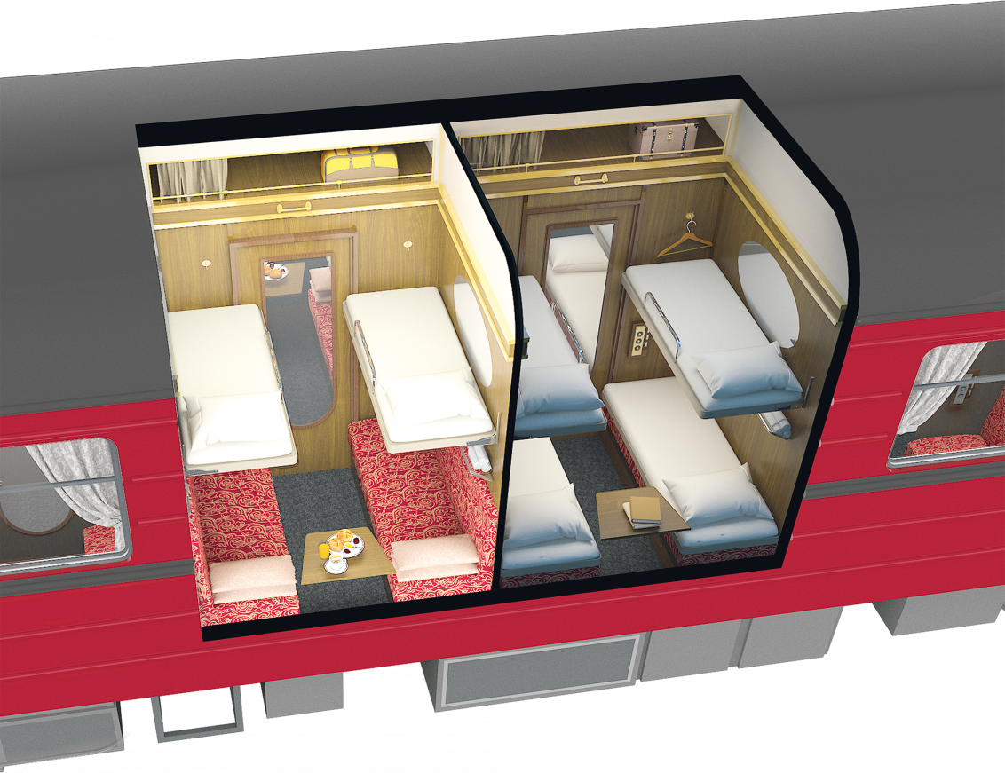Die Betten sind bequem und wegen der größeren Spurbreite der Waggons auch etwas größer als der europäische Durchschnitt, nämlich ca. 185 × 66 cm. Frische Bettwäsche finden Sie bei Reisebeginn in Ihrem Abteil.