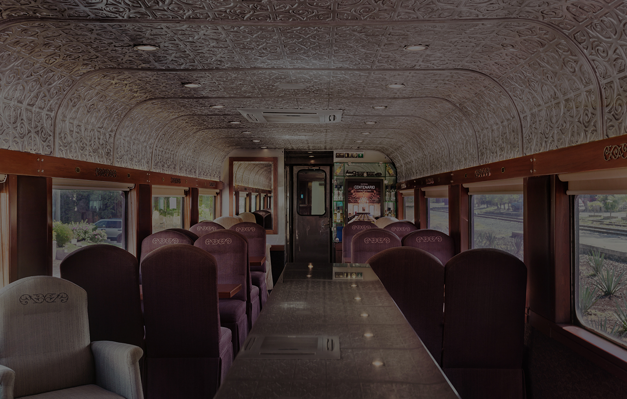 This is the most exclusive wagon of Jose Cuervo Express®. Enjoy your trip with the luxury of yesteryear and admire the incredible views of the agave landscape from the car decorated with a beautiful embossed roof. It features various rooms for passengers, a bar, a bartender and two waiters that make sure that nothing is missing.
